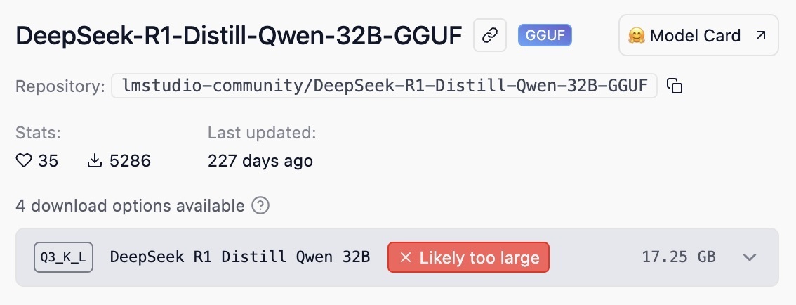 Если модель слишком «тяжела» для вашего устройства, приложение LM Studio предупредит вас об этом.