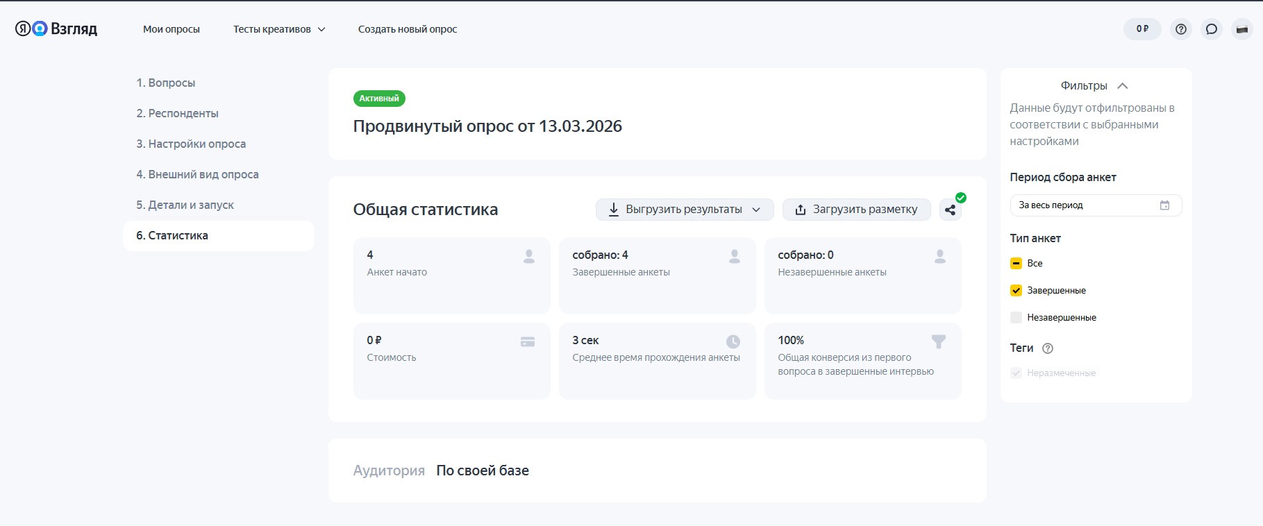 Более того, в разделе «Статистика» опроса мошенники могут в реальном времени отслеживать, сколько человек перешло по ссылке, и скачивать эти данные в виде таблицы. По сути — готовая рабочая аналитика.