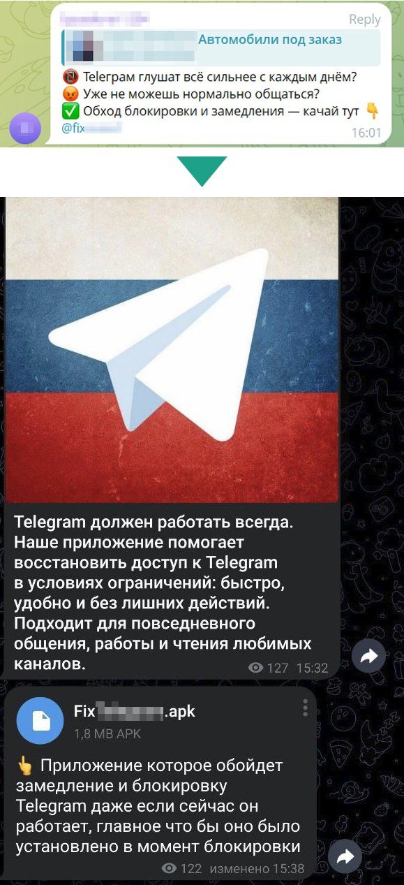 Во второй — под видом «исправленной» версии приложения Telegram, которая якобы стабильно работает и обходит все ограничения, мошенники распространяют старый недобрый троян Mamont.