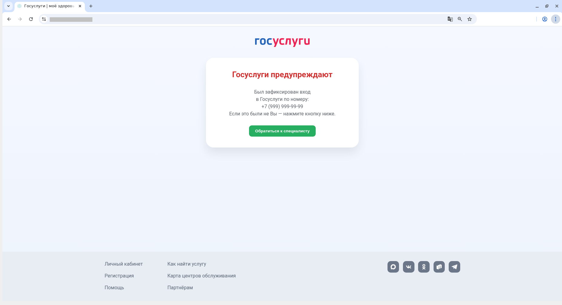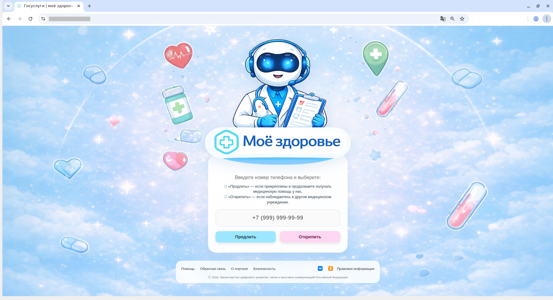 Впрочем, не всегда злоумышленники пытаются обмануть пациентов «в лоб»: порой мошеннические схемы намного хитрее. Так, в одной из обнаруженных нами атак злоумышленники присылают вам письмо якобы от поликлиники с просьбой «актуализировать обслуживание пациентов». Ссылка из письма ведет на поддельный сайт «Госуслуги | моё здоровье», где вы должны ввести свой номер телефона и нажать на кнопку «Продлить» или «Открепить». Вне зависимости от выбора, вы получаете номер талона, который предлагается отправить в регистратуру нажатием кнопки. Затем вам либо демонстрируют поддельное предупреждение от «Госуслуг» о том, что в ваш аккаунт был зафиксирован вход, и обещают «звонок для проверки защиты аккаунта», либо показывают сообщение, что вам скоро перезвонят из «регистратуры».